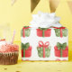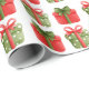 Vit inslagning av Pappra julklappar i rött och Grö Presentpapper