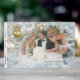 Skrämmande dekorationer i guld och silver träd omgivna av saderande blad i grönten, med nytillkommen snö i ett vinterland, för din jultemade bröllopsdag.