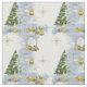 Mousserande dekorationer i Guld och Silver träd omgivna av saxfällor av sage grönt med nyfallna snö under en vinternystartsduk för bergbanor