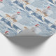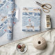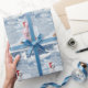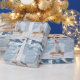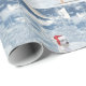 Vitt Pudel på en sled, med tomten i snö-redot, för att ha en roligt av julen
