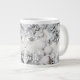 Anpassningsbar mugg med vinterkollage med vita prydnadsämnen och silver, snöflingor, blommor, klockor och glitter. Finns i flera storlekar.