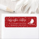 Röd och vit julreturadressetikett med snö, professionell, fåglars logotyp och modern skriptteckensnittsmix för ditt namn och adress. Söt vinteradressetikett för små företag eller privat använda. Andra matchande affärsprodukter finns i motsvarande samling. © y.BEE PAPERIE #ZazzleMade #christmasrettnadslabel
