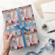Vit Julgran med röda prydnadsämnen, krans och helgdag vid ett vinterfönster i solsken. Gräns färg kan ändras.