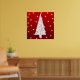 En fin vit Julgran-design som formades med cirklar, med vita stjärnor på röd bakgrund.