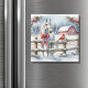 Julmagnet med en söt vit häst, en söt röd kardinal på stängslet och en rustik lada i bakgrunden av en snövit vinterdag som är gjord av vattenfärgsaikonst.