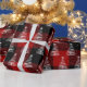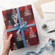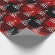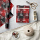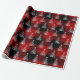 Vit stjärna helgdag i snöflingor med mousserande stjärnor på rött och svart buffel.