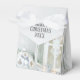 Vit ljusstråle med guld och silver julprydnader i snö med musik. Text kan ändras.