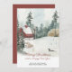 Traditionellt kort för vita julgranar med fredliga vinterlandskap med vattenfärg i en sjöhytt, gräs träd och snö fält med en sledge och anka vid sjö. Formuleringen lyder "God jul och Gott nytt år" i en handskriven typografi och mallen ställs in för personligen.