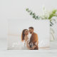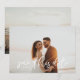 Vackra, vita bokstäver för att täcka över fotot spara datumkortet. Detta är en vacker typografi på ett fotokort med vita bokstäver. Det innehåller en övertoning om fotot behöver det bakom texten. Du kan behålla eller ta bort den mjuka övertoningen om du inte behöver den.