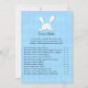 En vit kanin ovanför speltitel med baby blue, diamantartybakgrund. Mallar skapat åt dig. Det här är ett Över- eller Under babyduschspel.