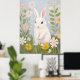 Denna förtrollande design fångar en felfri vit kanin som tittar fram genom en frodig äng av vårblommor, mot en lugn blå himmel. De mjuka pastellfärgerna och de känsliga detaljerna i blommorna kompletterar kaninens milda blick och skapar en känsla av frid och naturlig skönhet. Perfekt för att tillföra en touch av vild natur charm till vilket rum som helst, är detta konstverk ideal för alla som uppskattar naturens lugna skönhet.