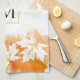 Vit kapsel orange i löv tvättar, monogram kökshandduk
