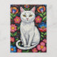 Vit katt i Colorful Folk Art Flowers Vykort