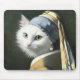 Vit katt med öronmärkning musmatta