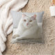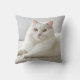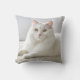 En söt vit katt ljugande på en vit matta med vit väggbakgrund