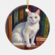 Vit katt teckning julgransprydnad keramik