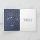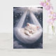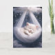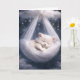 En lugn, vit kattunge sover fridfullt i en ömtålig tulle-hängmatta som svajar försiktigt från ett moln mitt i en fantastisk stjärnklar natthimmel. Den inre texten kan ändras.