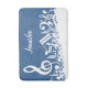 Roligt i badrummet, sjunga till hjärtat innehåll med den här musikdesignduschgardinen med vit påsbar musik noter och en stor tredubbel klyva på skifferblått