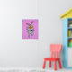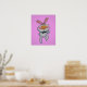 Den här poster konsten har en vit kanin med stor näsa ge på orangen med en tummen med en svart bågslips på rosa på bakgrunden med en svag solnedgång i mönster.