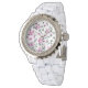 Vit körsbärsbärsfärg grenar, färgad med vattenfärger och bläck på rosans bakgrund