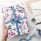 Vit körsbärsbärsfärg grenar, färgad med vattenfärger och bläck på rosans bakgrund