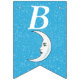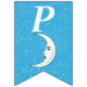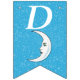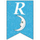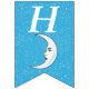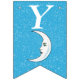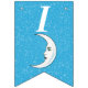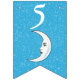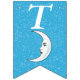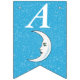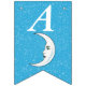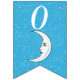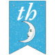 Den här flagga-formade buntbanderollen Grattis på födelsedagen är en skarp vattenblått med en spridning av små vita stjärnor och ett vitt halvmånsfärande måne som har ett ansikte. Anpassa födelseår med mallarna.