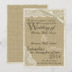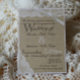 Falskt vitt spets över det rustika utseendet hos säckväv är tryckt på denna rustika landsbygd stil bröllop. Alla delar av dessa inbjudningar är tryckta. Det finns ingen faktisk spets eller säckväv ansluten.