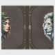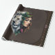 Vit Lejon och kvinnlig - Mystisk Porträtt av styrka och skönhet. En fängslande porträtt som förenar en vit lejon stormakt med en kvinnas känsliga skönhet. Den lämnat sidan avslöjar lejona med sitt blomande huvud, medan högerna visar en kvinna med mjuk hud, brunt hår och fet rött läppar. Gröntens löv och små blommar förbinder de två halvorna och symboliserar harmoni mellan natur, styrka och feminitet.