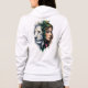 Vit Lejon och kvinnlig - Mystisk Porträtt av styrka och skönhet. En fängslande porträtt som förenar en vit lejon stormakt med en kvinnas känsliga skönhet. Den lämnat sidan avslöjar lejona med sitt blomande huvud, medan högerna visar en kvinna med mjuk hud, brunt hår och fet rött läppar. Gröntens löv och små blommar förbinder de två halvorna och symboliserar harmoni mellan natur, styrka och feminitet.