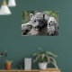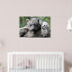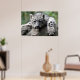 Med ett utandningsluft som ser en baby vit leopard som tittar på dig från sten utanför. Detta är ett vackert foto på den här poster