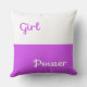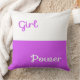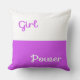 Girl Power kastkudde med en fin typografisk design som visar orden "GIRL POWER" på en vit och lila bakgrund.