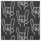 Hårda metall, rock and roll, djävulen-horns handskylt. Märkre: band, tecknad, djävulen, hand, hård, tung, horn, horn, metall, musik, sten, roll, tecken, symbol, tung metall, djävulen horn, tunga djävulen horn från metall, vektor
