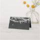 Rustic bröllop-platskort, bröllop och landsbyggsbröllop i perfekt och vinterbröllop, med en tvillingsträng i ljus och bokeh mot en svart bakgrund i kritan.