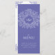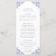 Blåvit och vit bröllop-middagsmeny. Redigera den här 4-kursmenyn med din egen måltidsalternativ. Enkel men modern hand plockade-löv och monogramdesign. © Original teckning och design av Sarah Trett för www.mylittleedenweddings.com endast på zazzle.