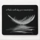 En enda vit ludd flytande på svartkryddad reflektion i vatten med inspirationcitat. Offerten kan ändras enligt dina önskemål.