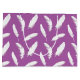 Vit ludderutskrift på mjuk lila - färggrafik för vita fjädrar flytande på en kontrasterande bakgrund av färgaden