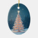 Ett vackert upplyst julgran står i ett snöigt landskap prydd med lysande ljus och krönt med en strålande stjärna.