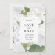 Botaniskt spara datumkort med vackra vita magnoliablommor och lövverk och dina bröllopsdetaljer i modern font. Kortet kan enkelt anpassas för alla evenemang genom att lägga till dina evenemangsuppgifter, teckensnittsstil, teckenstorlek och färg samt din valda formulering genom att klicka på 'Personifiera'-knappen.