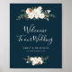vit magnolia-blommigtens blå välkomstsignal bröllo poster