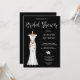 Samla familj och vänner för att hedra den blivande bruden med denna Vita Magnolia, Eleganta Svarta och Vita Bröllopsfestinladning. Designad med en vit bröllopsklänning, dekorerad med en vit magnoliablomma och guldfärgade blad på en svart bakgrund. För att anpassa, infoga bara dina detaljer i vår enkla mall och ersätt exempeltexten. Denna Bröllopsfestinladning finns tillgänglig för utskrift och kan också laddas ned.
