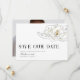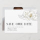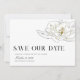 Ett vackert sydinspirerat bröllop spara datum med en illustrerad vit chic av magnolia sitta i i en modern layout på framsidan och ditt favoritfoto på baksidan.