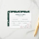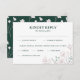 Ett enkelt men elegant RSVP-kort med måltidsalternativ som består av en vit magnolia- och eukalyptus-kant på en smaragdgrön bakgrund. För frågor eller önskemål, vänligen kontakta oss via chatten.