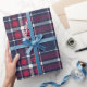 Jordbruksrött, marinblått och benvitt (som ett antikvitt färg) fläckat rutnät för mönster som består av ren, rustik handdrunknad, krusad, vågrät och lodrät mönster. Farmhouse land rustic helgdag mönster-gåva som är papper. Som en mysigt flanalfilt. Underbar till jul och vinter-julhelgen.