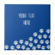 Tecknad stil vit hund papp för utskrift av keramiska plattor. Blå bakgrund. Redigera text för att göra dessa dekorativa rutor unika. Giftidé för hundälskare och deras sällskapsdjur.