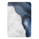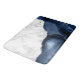 Elegantens vita marmor och marmor med blått agat som trimmas med faux silver glitter i detta lyxliknande badmat.