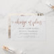 Oj! Oförutsedda omständigheter är svåra att planera för, men med dessa bröllopsetiketter för uppskjutande kan du enkelt meddela dina nära och kära! Korten har en vit marmorerad bakgrund. Orden "ändring av planer" visas högst upp i en falsk rosa guldskrift med söta svängar. På baksidan finns en fotomall som du kan ersätta med din egen. Klicka på "Personifiera denna mall" och börja lägga till dina egna detaljer!
