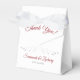 Tack för att ni föredrar boxar är perfekten för att tacka ledamöterna i er bröllopsfest för att de deltar i er speciella dag. Fyll med godis, bröllopsfavörer eller gåvor. De har en enkel men elegant utformning av röd skripttext på en vit bakgrund med en faux foil blommigt gräns. Fullständigt anpassade så att du kan ange den information du behöver.