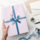 Nätt slående in papper med liten rosa polka dots på en vitbakgrund, redo som ska användas för något tillfälle. Skräddarsy detta produkter som tillfogar text till den.