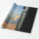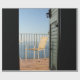 Vit metall armstol bredvid stängslet på morgonen presentpapper