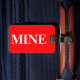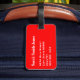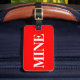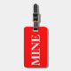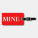 Bagagetagg med namn och adress med vit "MINE" på röd bakgrund färg. Anpassa med namn och adress-information med hjälp av de enkla mallarna.